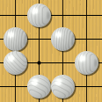 Les deux pierres noires sont maintenant liées, c'est ainsi qu'un groupe est formé. Un groupe "vit ou meurt en tnat qu'unité, comme un tout", ce qui revien à dire qu'une pierre unique d'un groupe ne peut être capturé. Une fois le groupe capturé, toutes les pierres du groupe sont perdus. Le petit groupe noir a maintenant 3 libertés. Connecter diagonalement est impossible; les pierres d'un groupe sont toujours reliées entre elles par des lignes.