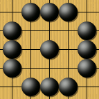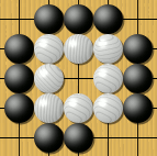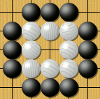 Dans le diagrame qui suit, si Noir joue dans l'endroit cerné, sa pierre est immédiatement perdu. Noir perd une pierre et son tour de jouer. Mais si il enferme le groupe blanc puis joue dans l'endroit cerné, il enlève bel et bien la dernière liberté à ce groupe blanc.
