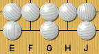 Dans cette figure Blanc n'a pas à ajouter de pierre pour être en vie, puisque peu importe où Noir y dépose une pierre, Blanc peut répondre en G1 ou H1 pour créer deux yeux, mais si Blanc à le maleur de jouer en F1 ou J1, Noir peut profiter de ce mauvais coup pour tuer Blanc.