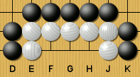 Blanc arrive ici au même résultat avec 5 pierres en moins.Il est aussi plu facile de faire des yeux sur le bord du damier, qu'au milieu.